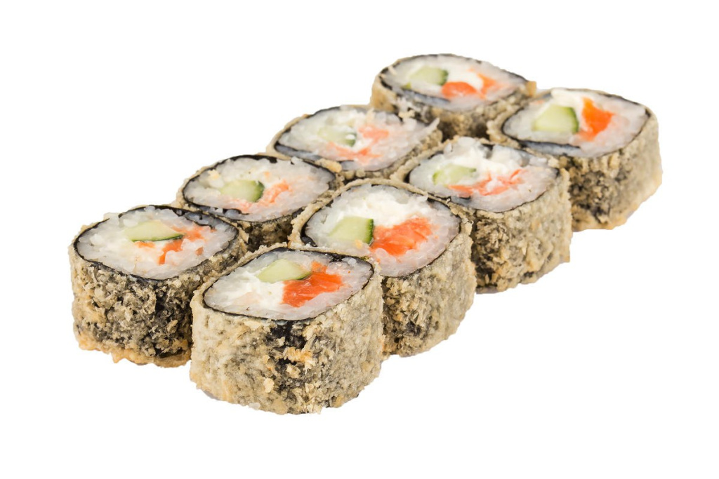 Сяке фрай маки - это изысканный японский ролл, приготовленный из свежего лосося, сыра Филадельфия и хрустящей жареной обсыпки. Каждый ролл тщательно свернут в нежный рис и обернут в лист нори, что придает ему особую ароматность и неповторимый вкус.