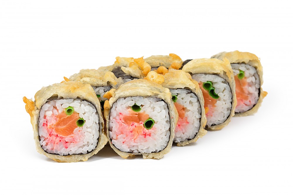 Сяке фрай маки - это изысканный японский ролл, приготовленный из свежего лосося, сыра Филадельфия и хрустящей жареной обсыпки. Каждый ролл тщательно свернут в нежный рис и обернут в лист нори, что придает ему особую ароматность и неповторимый вкус.