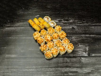 Каждый ролл приготавливается из свежих ингредиентов и аккуратно скручивается в форму традиционного суши-ролла, а затем запекается до золотистой корочки. Готовый ролл выглядит очень аппетитно и красиво благодаря своей золотистой корочке и нарезке на кусочки. Рекомендуется подавать ролл вместе со сладким соусом на выбор, таким как соус эби или соус терияки, чтобы подчеркнуть вкус и добавить изюминку в блюдо.